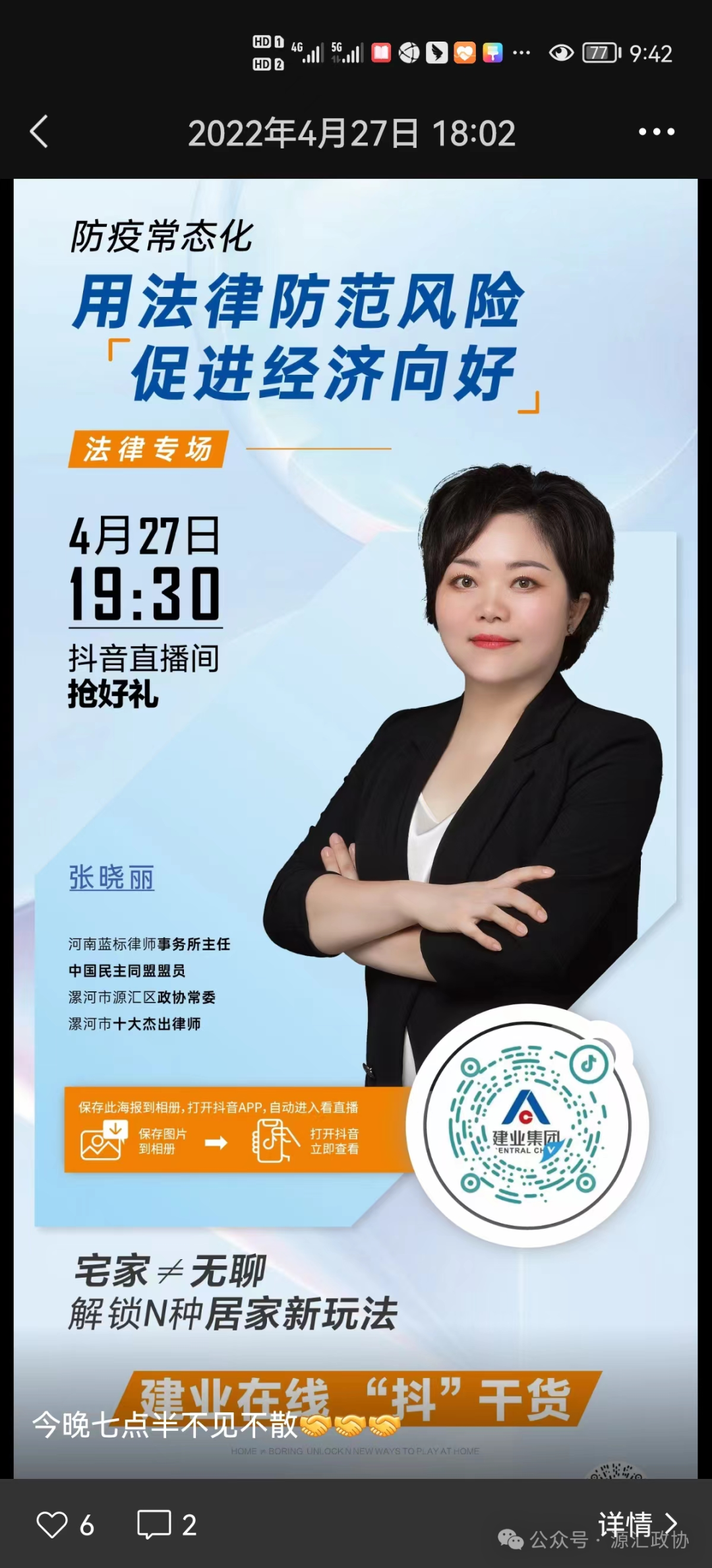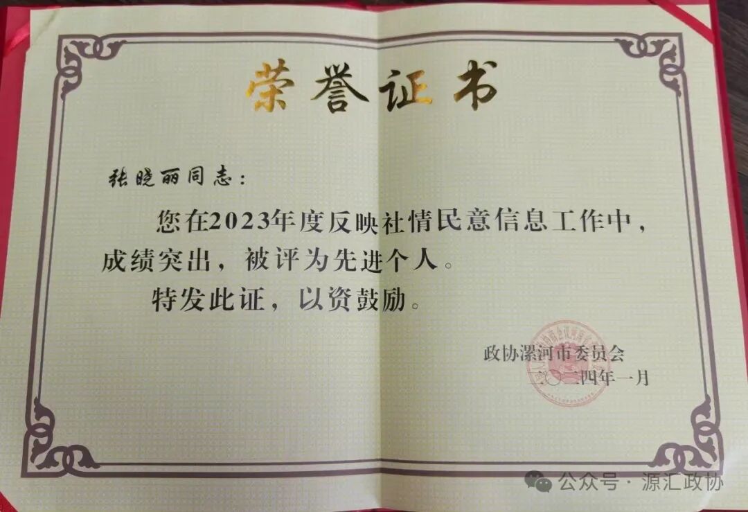 把个人职业追求与国家发展紧密相连,关切社会问题,立足法治思考,是张晓丽律师一直以来的行为准则。仅2023年度一年,她撰写社区民意6件,提案2件,立法建议1件,参与“万人助万企”委员活动2次,担任法院、检察院,公安机关特约监督员先后6次评议案件,同时多次参加市政协读书活动,参加区政协调研活动等。作为委员律师,张晓丽积极参与市区政协与漯河律协组织的如“万人助万企”“法律义诊”活动,数十次参与漯河立法研讨,深入企业进行公益帮扶,为政府解忧的同时,积极撰写社区民意,主动作为的参政议政,并荣获漯河市2023政协反映社情民意信息工作先进个人等奖项。