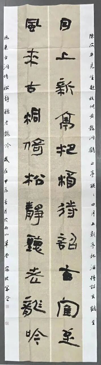 本次展览河南省共有7件书画作品入展,其中书法作品3件。寇现军的作品《月上风来》联书体为秦简,采用隶书笔法,线条厚重苍茫,入古出新,具有极强的时代审美特征。