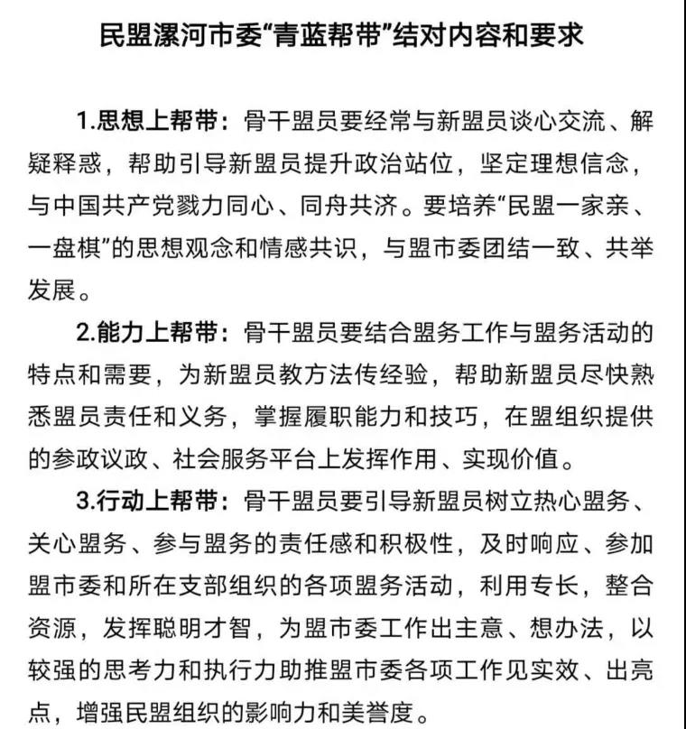 - 民盟漯河市委举办新盟员和骨干盟员培训会暨第二批“青蓝帮带”结对活动