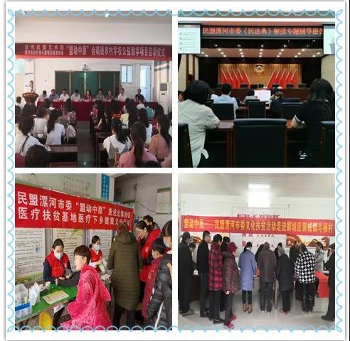 深入实施农村教育扶贫“烛光行动”,先后为30多所学校开展音乐支教,重点支持、帮助农村贫困家庭学生通过音乐特长考入大学。启动实施“童声·童心·童梦”合唱教学进农村学校公益教学项目和“烛光行动.教育扶贫”李雪文化公益阅读项目,有效缓解农村教育资源不均衡、不充分问题。依托民盟法律扶贫工作站,组织盟员律师在市直单位和县区举办了16场《民法典》专题讲座。依托民盟“同心书屋”,定期开展“我读书 我快乐”书友会活动,帮助社区居民倡树学习之风,提升素质,增进情感。依托民盟书画院,组织盟内书画家为郾城区邵堂村、斗杨村村民书写新春对联,给村民们送去节日祝福。依托北舞渡镇民盟医疗扶贫基地,开展医疗下乡、义诊讲学、公卫知识和健康培训、心理咨询等活动,为农村群众身心健康释疑解惑、提供服务。