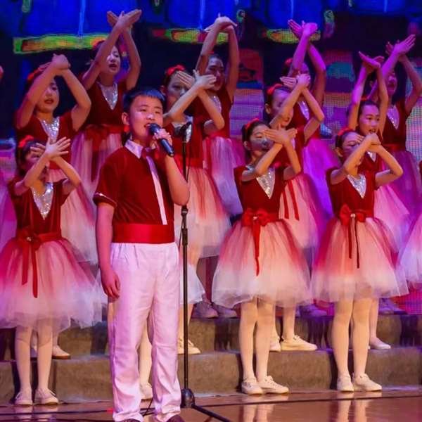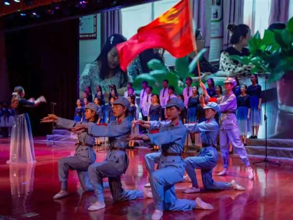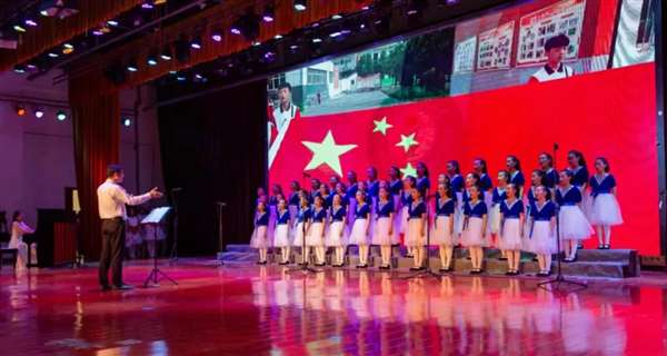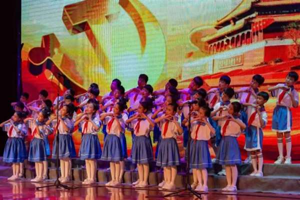 活动现场,孩子们身穿整齐干净的校服,脸上洋溢着自信开朗的笑容,《党旗飘飘》《灯火里的中国》《少年中国梦》《红星伴我成长》《爱在人间》……稚气未脱的童声唱出了孩子们对祖国母亲的热爱与祝福、对幸福生活的赞美与向往。